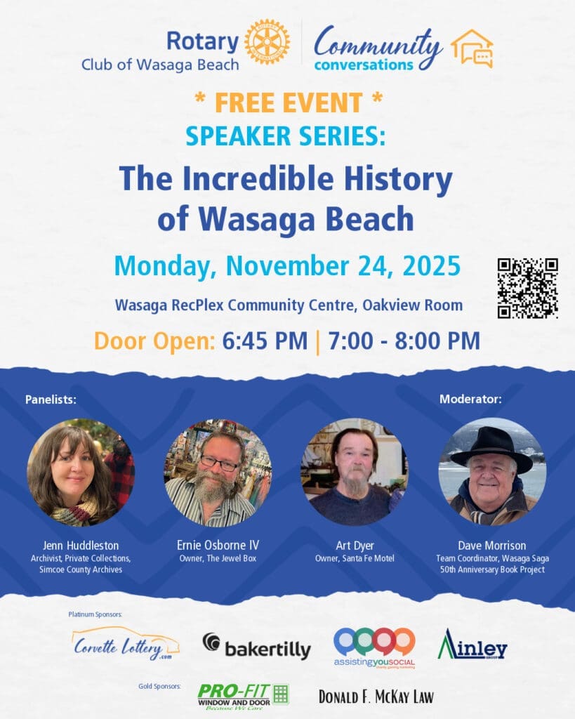 Take a deep dive into the remarkable past of our community at the next Rotary Community Conversations evening, featuring stories, memories, and hidden gems from Wasaga Beach’s rich history.